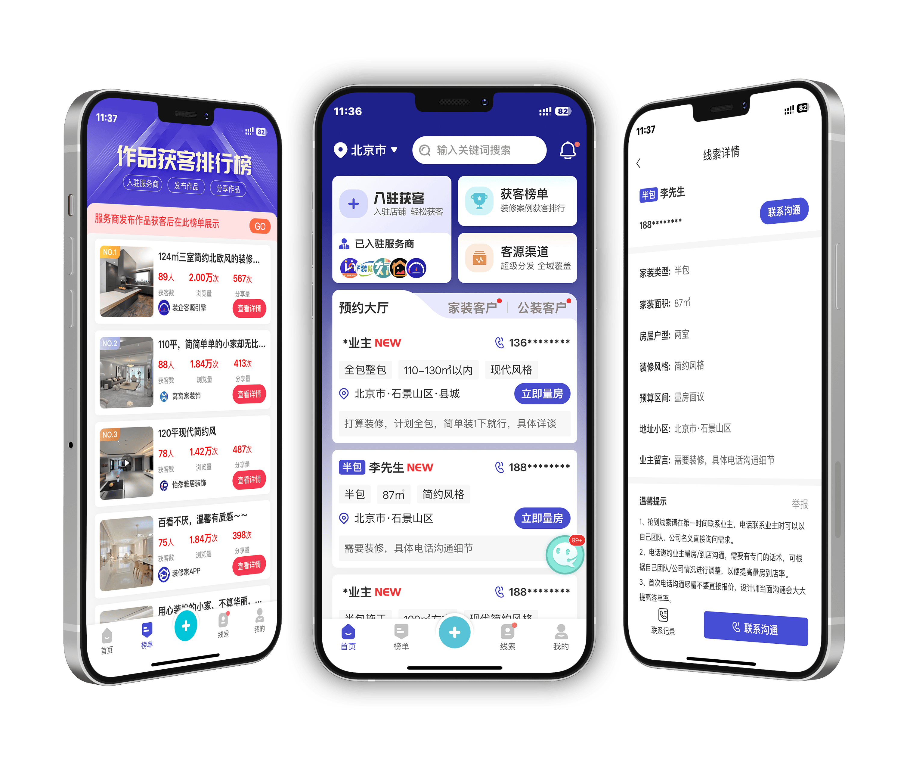 矩阵式app客源渠道笼盖普遍,落成后不是就竣事了,拆修公司获客,每个都能持久做 —— 线上靠平台和短视频堆集流量,避免墙面受潮”;都能精准定位,平台给更多,不消逃求爆款,好比 “拆修施工日志”“业从好评采访”“拆修避坑学问”,